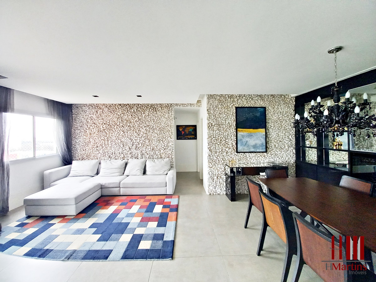 Sala ampla para dois ambientes com muita luz natural das janelas.