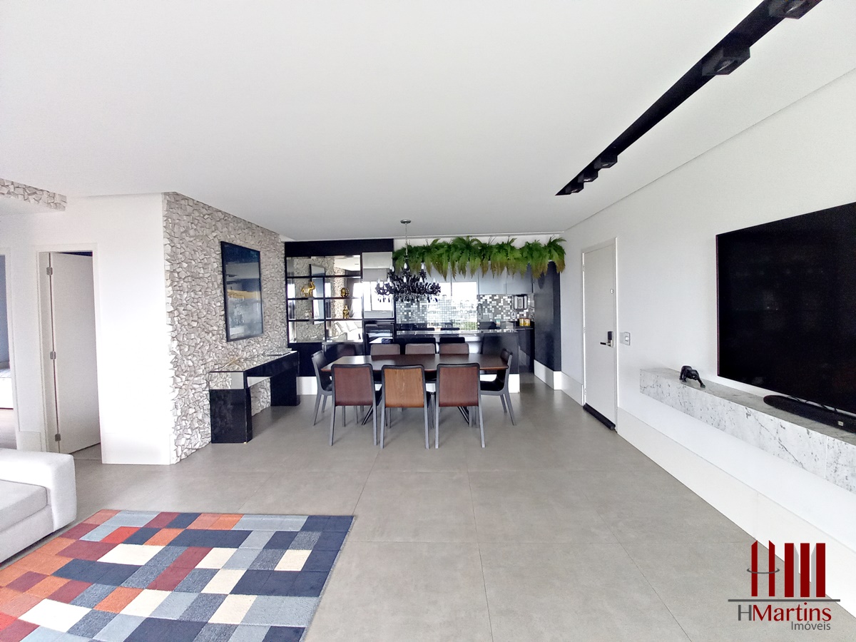 Sala ampla para dois ambientes com muita luz natural das janelas.