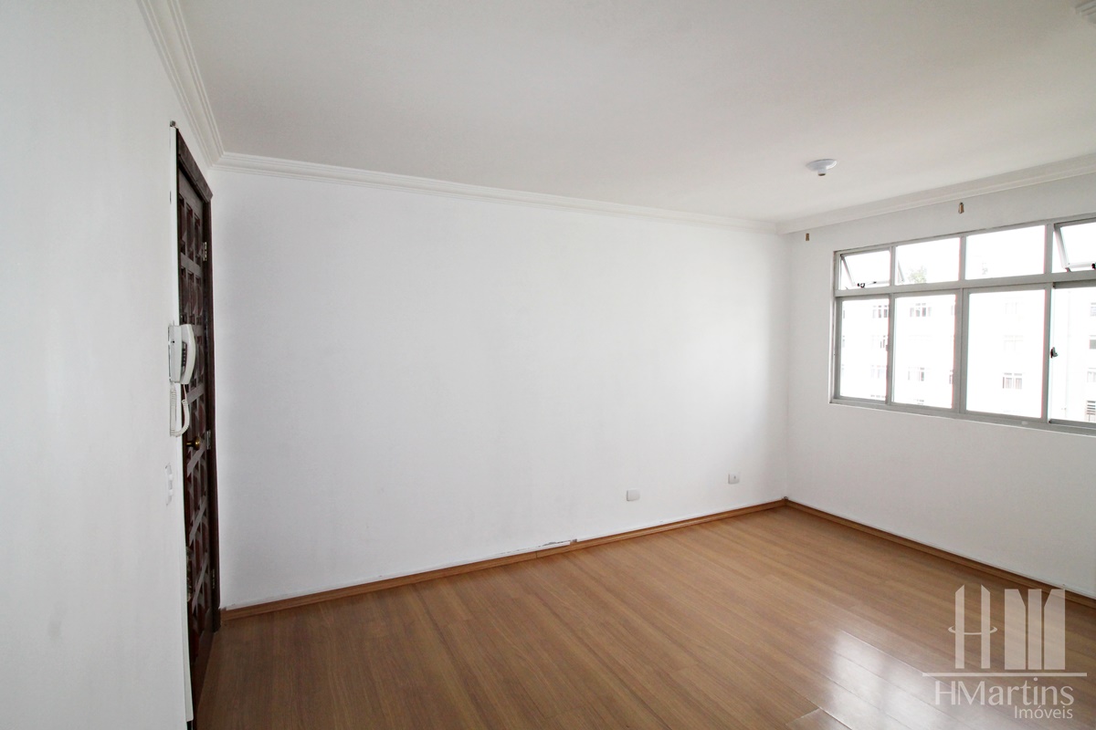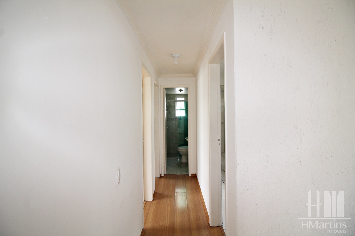 Pisos em madeira laminada na sala e corredor.